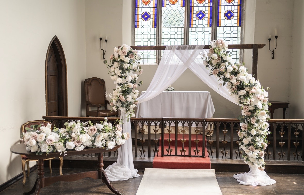 - Flower arch (£250), with matching centrepieces and top table flowers available