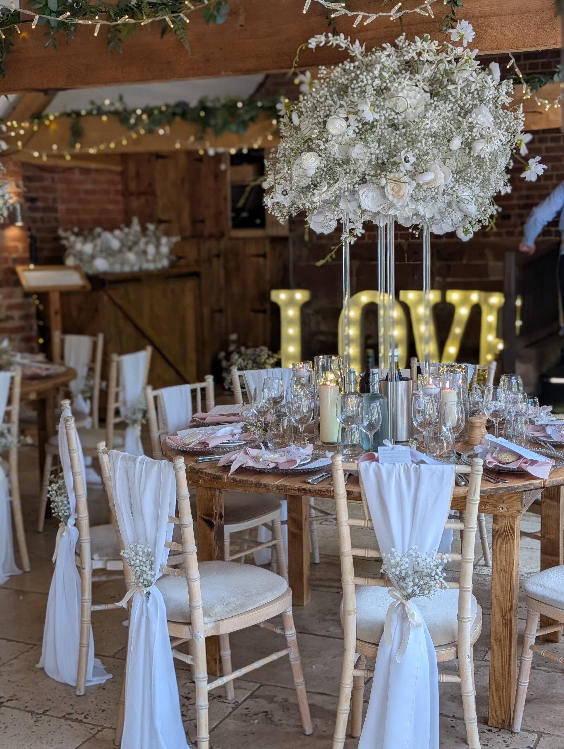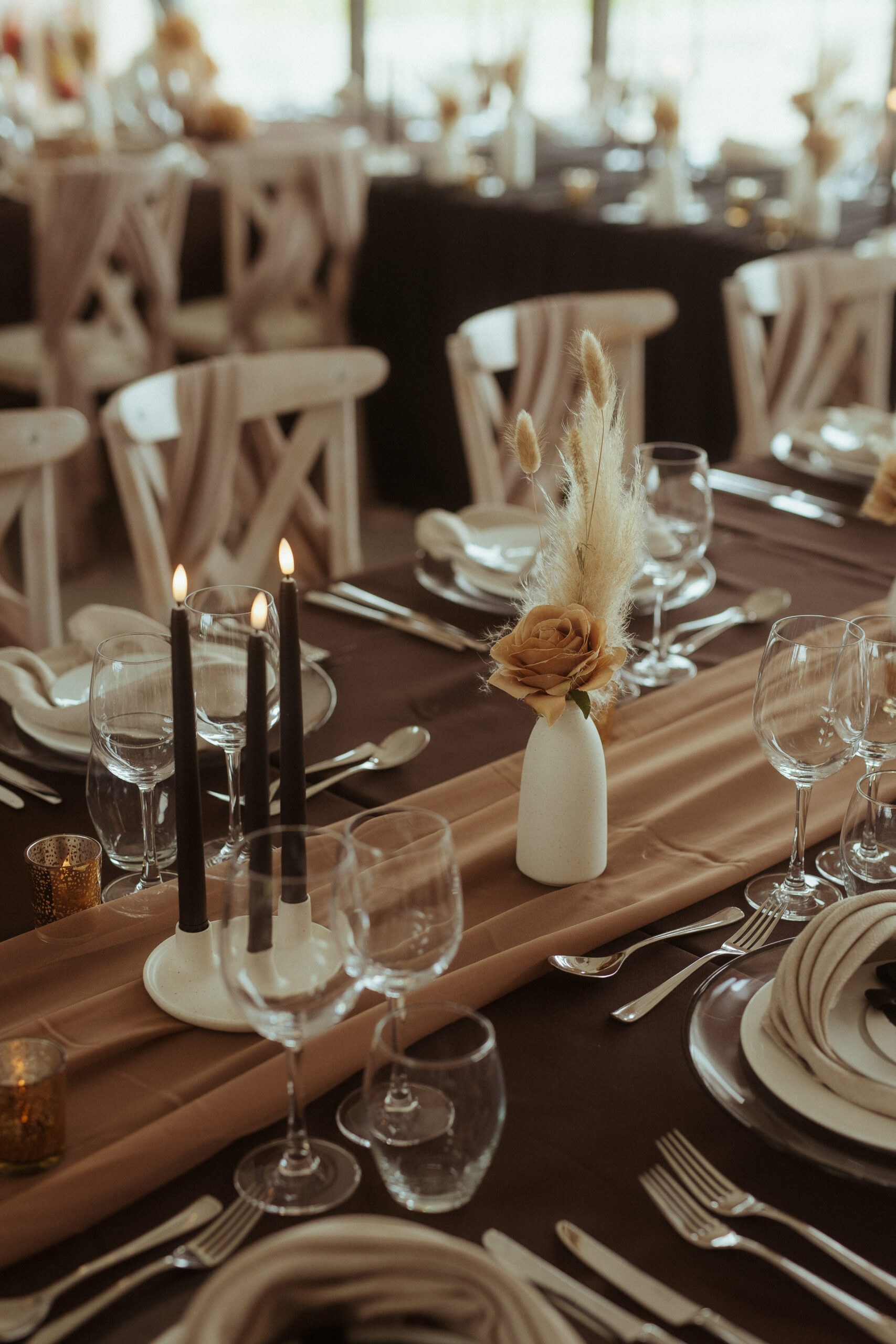 Table Settings – Elegant centrepieces, linens, and finishing touches to elevate your reception.