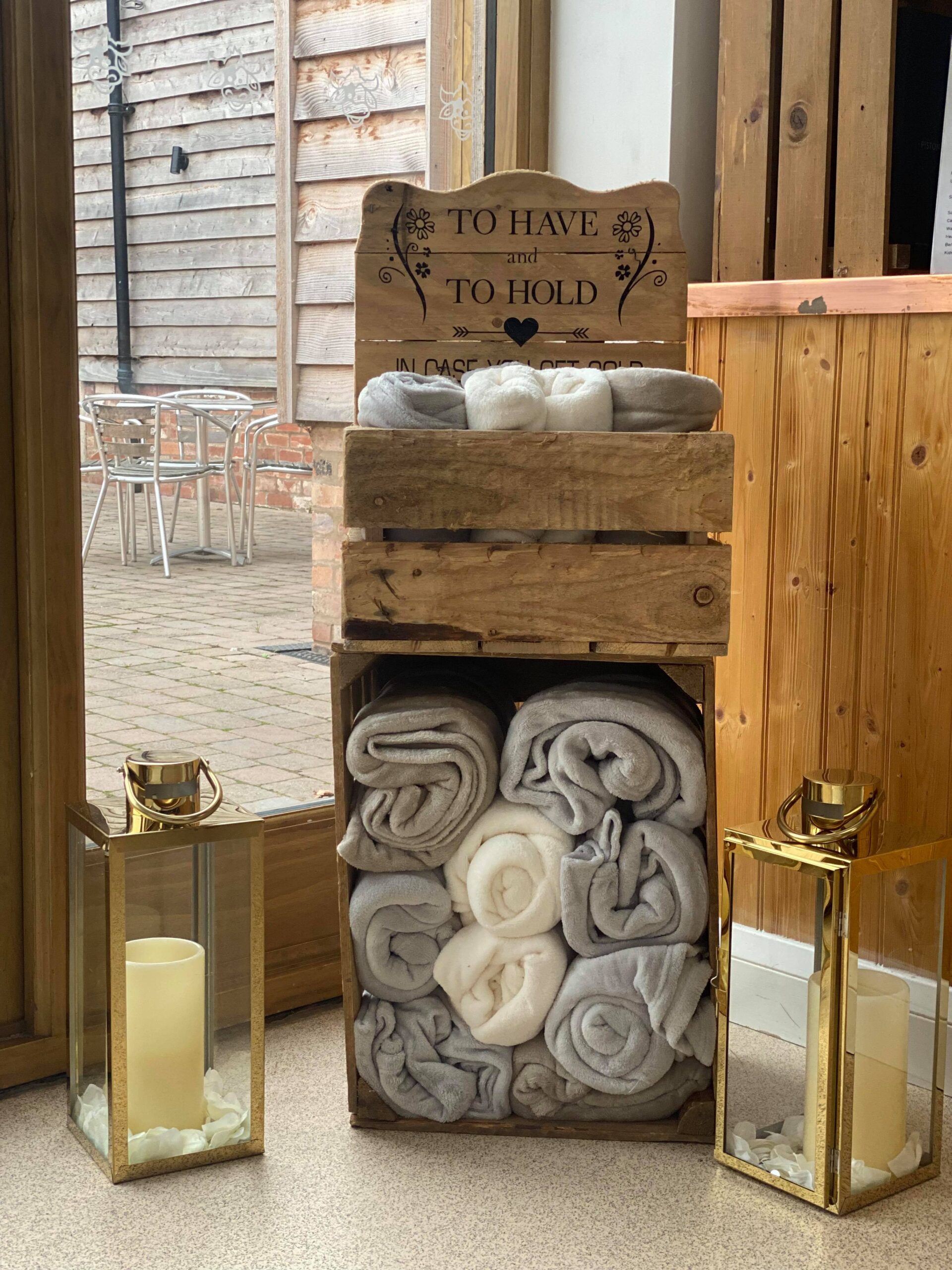 Perfect if you have your own selection of throws or personalised blankets. We’ll supply the styled box and sign—just add your blankets on the day. - Full Setup – Blankets Included