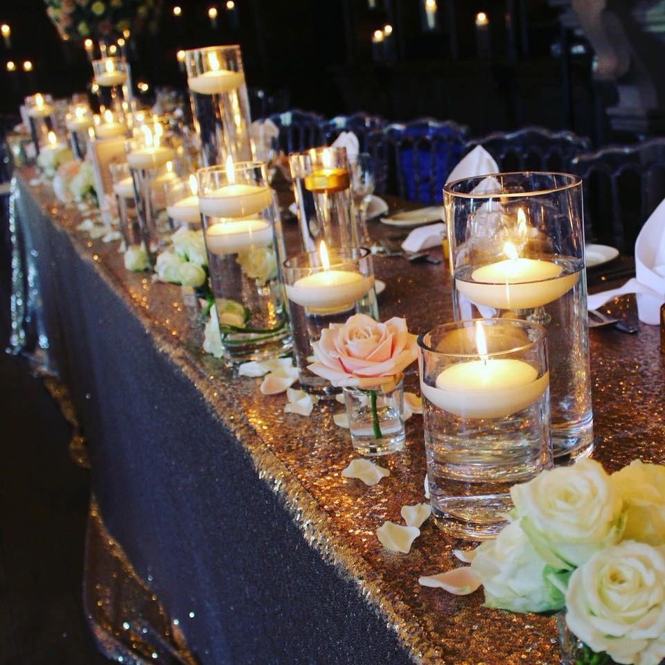As evening wears on, the white LED dancefloor is the centre of celebration — creating a spellbinding glow that invites everyone to dance. The glittering lights add glamour and atmosphere, wonderfully complementing the styling details around the room.