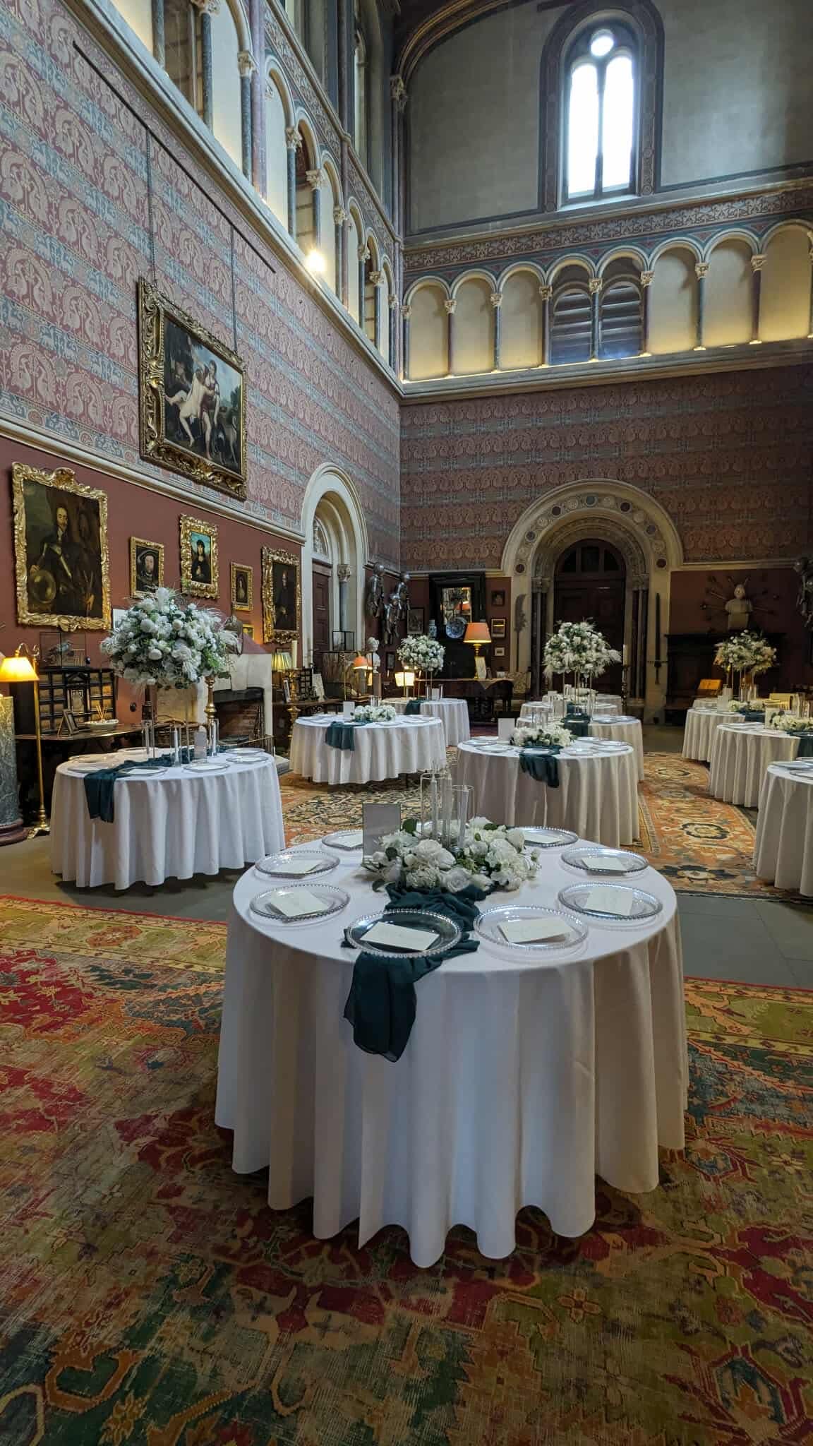 Guests can choose from a variety of ceremony options — whether in the regal Gothic Drawing Room, the grand Great Hall, or on the scenic Lower Terrace overlooking the countryside. The reception continues in style, with drinks on the terrace, dining in the Dining Room or Great Hall, and dancing in the atmospheric Octagon Room.