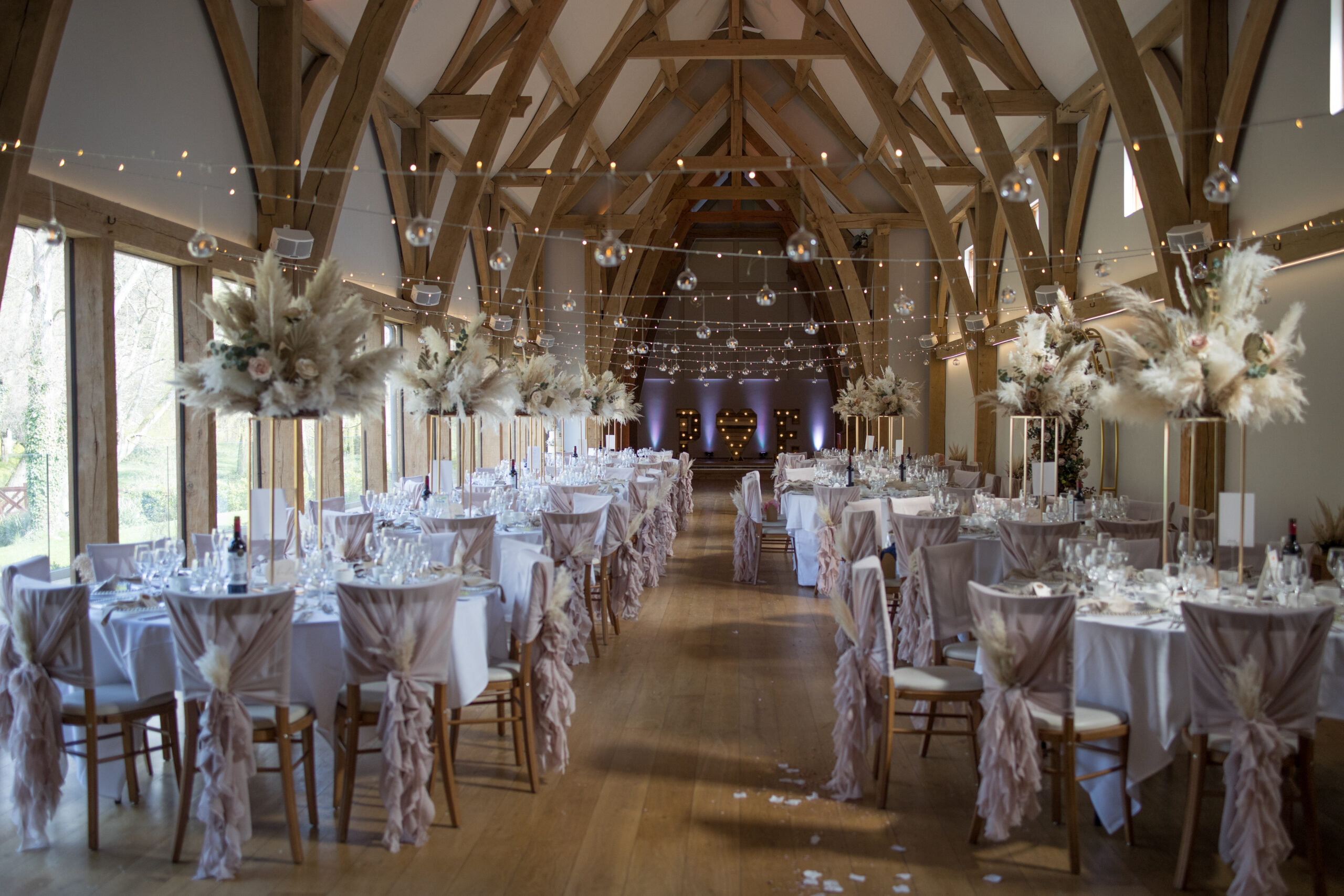 We know how to work with the features of Mill Barns — the timber beams, the glass walls, the waterside aspects — to accentuate, not compete, with the venue itself.